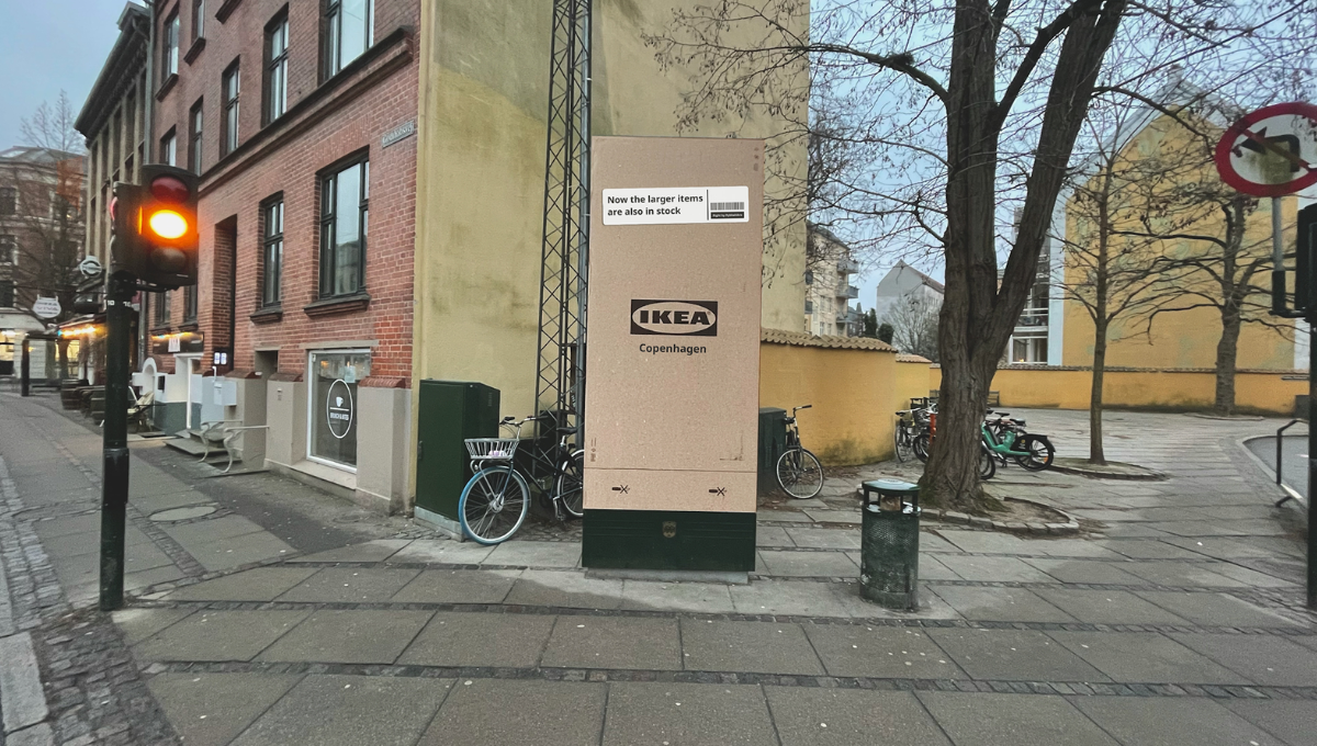 Ikea ha lanzado una llamativa campaña de publicidad exterior en la capital danesa con el objetivo de desmontar una percepción muy extendida entre los consumidores: que su tienda del centro de la ciudad solo vende artículos pequeños. Para hacerlo, la marca ha recurrido a uno de sus elementos más icónicos —las cajas de embalaje plano— y lo ha convertido en el eje central del mensaje.
