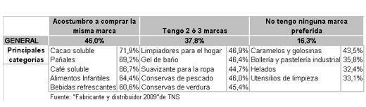 La aparente fidelidad por la marca queda desmentida sin embargo por el elevado porcentaje de consumidores que al no encontrarla en el lineal comprarán otra. Más de un 50% de los encuestados declaran que buscarán una marca sustitutiva en caso de no encontrar la habitual en la tienda. Esto ocurrirá sobre todo en productos con un bajo nivel de fidelidad, como los utensilios de limpieza, la bollería industrial o los caramelos y golosinas (casi 7 de cada 10 consumidores elegirán otra marca al no encontrar la habitual).