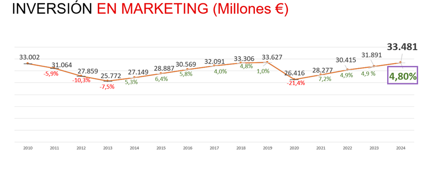 - Inversión en Marca y Relación con Clientes: 3.623,2 millones (10,8 %), aunque con una caída del 2,3 %.