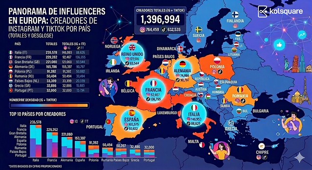 - El auge estructural de TikTok. En mercados como Francia, TikTok ya supera a Instagram en volumen de creadores activos.