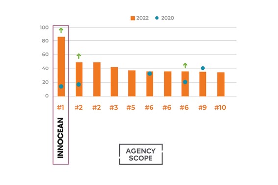 Innocean Spain ha logrado la proeza de conseguir el primer puesto en la categoría de "agencia líder del cliente" entre un total de 55 agencias, con un resultado superior al promedio de otras agencias del 30,4%.