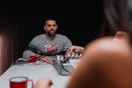 La acción se centró en 11 preguntas comprometidas. "¿Alguna vez le has vendido la moto a una chica para enamorarla?", "¿Has visitado el perfil de tu ex?" o "¿Eres más motero que mujeriego?" son algunas cuestiones que Alba lanza mientras el poligrafista toma nota.