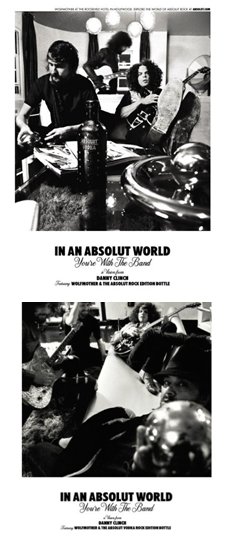 Más allá de la botella, la marca de vodka ha situado su nueva campaña publicitaria en el mundo del rock, gracias a la colaboración del fotógrafo Danny Clinch y el grupo de rock Wolfmother, considerado heredero del estilo de Led Zeppelín, AC/DC o Black Sabbath. En España la campaña se podrá ver en revistas durante los meses de octubre, noviembre y diciembre en más de 150 medios (femeninas, masculinas, tendencias, diarios, suplementos, ocio etc). La agencia de medios es Optimedia.Clinch, reconocido maestro en captar la iconografía rockera, retrató a los australianos acompañados con la botella Rock Edition durante largas jornadas de ensayos de su nuevo album “Cosmic egg”. El documento fotográfico reúne a los tres (botella, artista y banda) en el legendario Sunsent Sound Studio en Hollywood y en el no menos mítico Roosevelt Hotel. “Lo estupendo de este proyecto fue que Absolut nos pidió que hiciéramos lo que mejor sabemos hacer, Wolfmother tocó y grabó sus temas y yo lo capturé con mi cámara. Es fantástico cuando nadie compromete tu trabajo, así es como se puede hacer una gran campaña de publicidad”, asegura en un comunicado Danny Clinch.“Durante décadas el rock ha servido de hilo conductor de la cultura contemporánea. Absolut tiene auténtica pasión por la creatividad, ya hemos colaborado en otras ocasiones con el mundo de la música, y Absolut Rock Edition es nuestra forma de celebrar el rock and roll” comenta Ángel García Recuero, brand manager de Absolut en España.