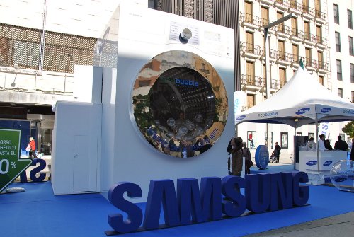 Con esta acción Samsung quiere dar a conocer el lanzamiento de la lavadora Eco-Bubble, basada en un sistema en el que el detergente, el agua y el aire se mezclan antes de entrar en contacto con la ropa haciendo que el lavado sea más eficaz, según el fabricante.
