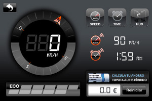 Lo más novedoso es que esta aplicación ofrece la visualización de los datos en modo HUD (Head Up Display), de forma que el conductor puede ver reflejado en el parabrisas de su coche los datos más importantes aunque esté en marcha.