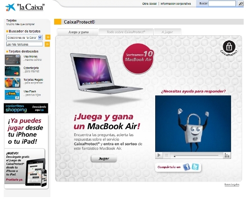 Los participantes que contesten correctamente a todas las preguntas hasta el 30 de junio entrarán en el sorteo de diez ordenadores portátiles MacBook Air. La campaña realizada por OgilvyOne da vida al logotipo del servicio, que es un candado “inquieto y simpático de ojos saltones”, según comentan en una nota de prensa. Éste, además de responder a todas las dudas de los clientes, también es el protagonista de una campaña digital con aplicaciones para iPhone e iPad disponibles en la AppStore y en el microsite del servicio.