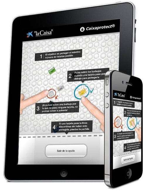 El juego, disponible en el portal de la entidad financiera, consiste en una serie de preguntas que aparecen tras la explosión de unas burbujas mediante la interacción con el cursor del ordenador del usuario. A través de las cuestiones, La Caixa da a conocer su servicio, que tiene como principal característica el envío de un SMS a los clientes cada vez que se produzca alguna operación de importe elevado.