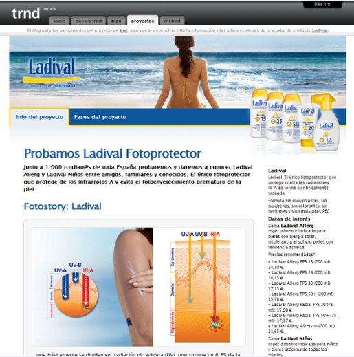 Presente en el mercado español desde 2009, Ladival quiere promocionar las dos gamas de protectores solares que comercializa en nuestro país: Ladival Allerg y Ladival Niños. Para esta acción, mil miembros de la comunidad Trnd probarán y difundirán su experiencia en una campaña boca oreja entre consumidores.