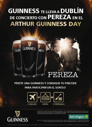 Durante la primera semana de septiembre se realizará un sorteo en el que se conocerán los ganadores de uno de los veinticinco viajes dobles para asistir al Arthur Guinness Day en Dublín, un concierto que tendrá lugar en la Storehouse que tendrá como cabeza de cartel al grupo Pereza. Como en otras ocasiones, afirma Guinness, la campaña contará con el apoyo de Aer Lingus, la aerolínea más importante de Irlanda.
