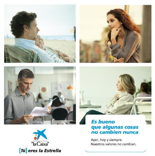 Por su parte, Gustavo Montoro, director creativo de esta campaña, considera que “la crisis que estamos padeciendo afecta a la salud de las empresas, al bienestar de las personas y sobre todo a la confianza en el sistema. En este escenario de incertidumbre, La Caixa decide lanzar una campaña de imagen basada en los valores y compromisos que ha mantenido desde siempre y a los que quiere seguir siendo fiel”.