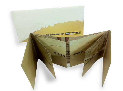 Para realizar esta travesía por un mundo totalmente nuevo para Nordika´s, la agencia ha diseñado un original folleto que invita a interactuar al público con una sucesiva relación de páginas troqueladas y microperforadas que generan una expectación alineada con el objetivo de sorprender.