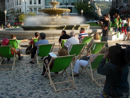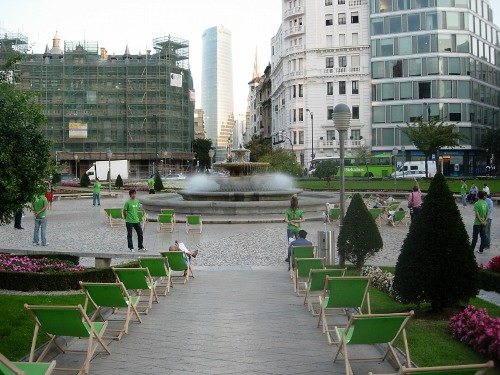 El pasado viernes 30 de septiembre Bilbao amaneció con 1.000 hamacas verdes en los principales puntos de la ciudad, todas ellas ubicadas mirando hacia la nueva Torre Iberdrola. Una nota impresa en las propias hamacas presentaba a la nueva sede como el “Km0 de las energías limpias” e invitaba a los viandantes a tumbarse y disfrutar de una nueva perspectiva de la ciudad. A modo de broche final, y una vez terminada la acción, el público pudo llevarse la hamaca como recuerdo. De forma paralela, se repartieron 2.000 camisetas conmemorativas de la inauguración.