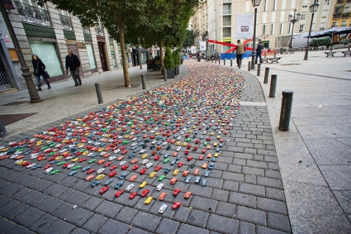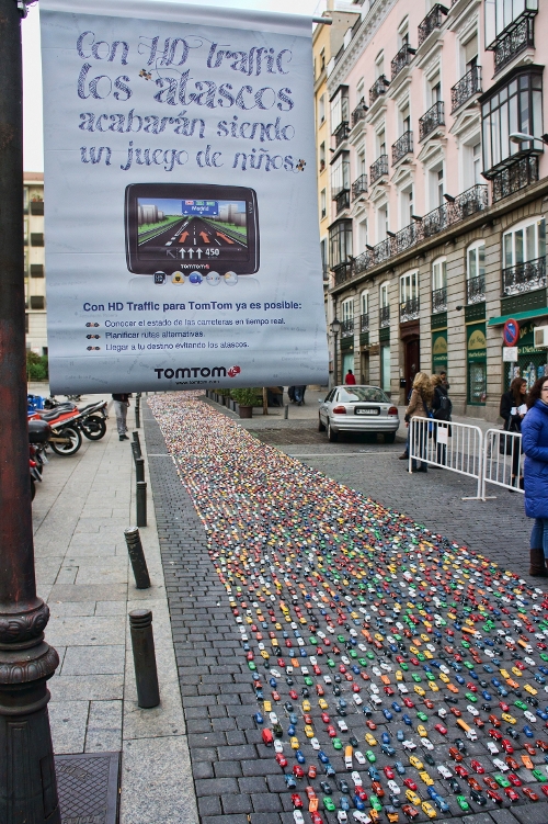 La agencia Bungalow 25 fue la encargada de montar este atasco en pleno centro de Madrid colocando 12.000 coches de juguete. La noche del 15 de noviembre cortaron la Calle San Bartolomé, en el barrio de Chueca, para tener tiempo de poner en el suelo uno a uno los 12.500 coches. En aproximadamente 4 horas cubrieron más de 60 metros del largo de la calle con miles de Twingo, Citroën C4, Ibiza, Xsara, coches 4x4, camiones, coches de policía, bomberos e incluso alguna excavadora y hormigonera.