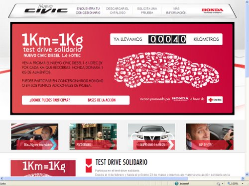 Aprovechando el lanzamiento de un nuevo motor diesel 1.6 i-DTEC, Honda ha querido convertir los recorridos que los conductores realicen con este motor en kilómetros solidarios. Mediante esta acción la compañía invita al público a participar en pruebas de conducción en las que los kilómetros que recorra el vehículo se convertirán en kilos de comida.