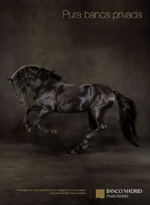 Como resultado de esta nueva identidad, se ha creado una campaña publicitaria protagonizada por un caballo de pura sangre, puesto que representa los valores que el nuevo Banco Madrid quiere transmitir y la esencia de su actividad: pura banca privada.