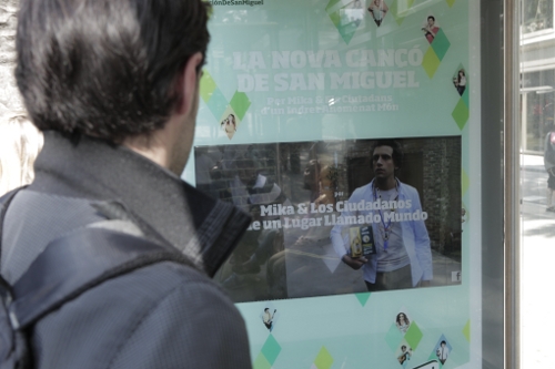 Por otra parte, la campaña también está presente con opis interactivos. En nueve marquesinas se han instalado pantallas táctiles donde los usuarios pueden disfrutar del videoclip interactuando con la pantalla. Es la primera vez que en Barcelona se realiza una acción en mobiliario urbano en la que se permite emitir sonido ambiente.