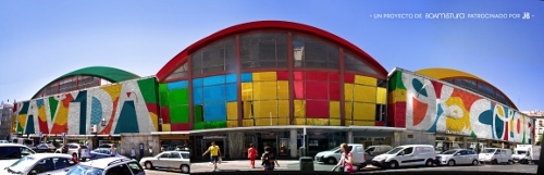 Así la fachada del mercado, que fue inaugurado por el rey Alfonso XII en 1875, se convertirá en mural de arte urbano más grande de España y uno de los mayores jamás realizado en Europa, según un comunicado de la marca. “Colores, iconos, palabras, y dibujos... elementos, refuerzan el concepto de optimismo, incorporando elementos orgánicos (agua, carne, viento, ladrillo, etc) buscando una mayor riqueza visual más fresca y divertida. El resultado es un "collage" a imagen del mercado y su barrio”, aseguran desde Boamistura.