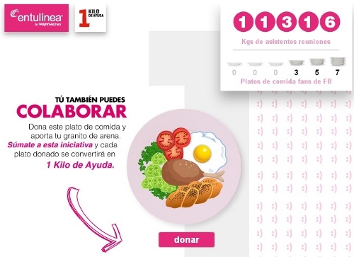Parte de la acción se ha desarrollado en Facebook, donde la agencia de medios MEC creó el plan de medios para difundir una aplicación donde se ha ido reflejando los kilos adelgazados por los asistentes a reuniones de entulínea, y donde los fans de la página de Entulínea podían donar sus “platos de comida”. Gracias a esta acción se han unido más de 3.000 nuevos fans desde el comienzo de la campaña solidaria el 9 de enero.