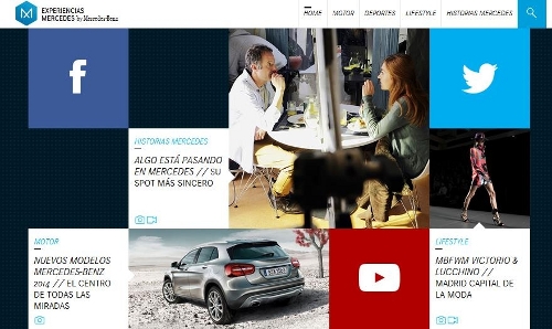 Por su parte, la agencia Pixel and Pixel ha convertido el site Experiencias Mercedes en una plataforma creadora de contenidos más allá de motor (estilo de vida, deportes y acciones de la marca) y, a modo de revista, se adapta al estilo de vida del target objetivo.
