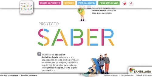 Para acceder a todas las piezas audiovisuales del proyecto, Clicknaranja ha creado un site desarrollado en HTML5 que cuenta con dos de las tendencias más seguidas en el diseño web: el parallax scrolling y el responsive, el primero buscando la espectacularidad para mostrar el contenido y el segundo para adaptar el diseño del site a todos los dispositivos. El proyecto se completa con el diseño del site Saberhacer.es, una web que describe el nuevo proyecto educativo integral, flexible y creativo de Santillana para tratar de facilitar que alumnos y profesores desarrollen al máximo las capacidades de aprender y de enseñar.