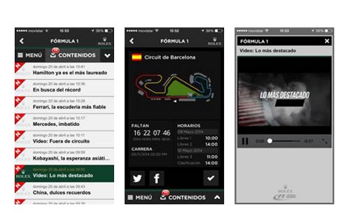 La nueva sección cuenta con un extenso menú con información y estadísticas sobre las escuderías, pilotos, calendarios o el análisis de cada GP vuelta a vuelta. El usuario puede interactuar durante los Grandes Premios mediante mensajes push como encuestas, vídeos, imágenes y compartir estos contenidos en las redes sociales.