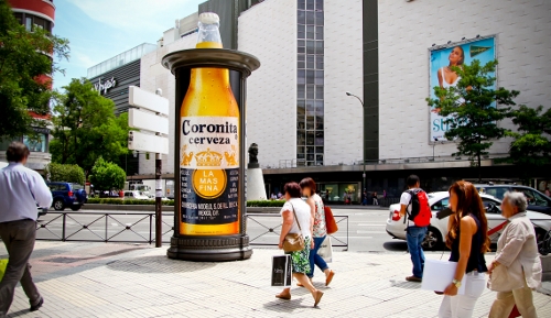 Para esta campaña se han escogido emplazamientos céntricos en Madrid como Alcalá esquina Gran Vía o Concha Espina esquina Paseo de la Castellana. Coronita ha combinado esta acción de exterior espectacular con un circuito de cobertura en soportes convencionales.