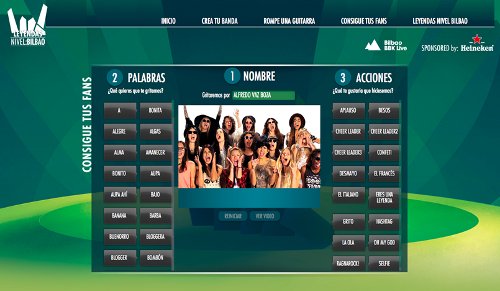 Para que los asistentes se sientan como una auténticas” leyendas del rock”, la agencia FCB ha creado una acción centrada en la web www.leyendasnivelbilbao.com, desde la que los usuarios puedan crear su propia banda, romper una guitarra para participar en el sorteo de una Fender Stratocaster o vivir el calor de tus fans aclamándote.