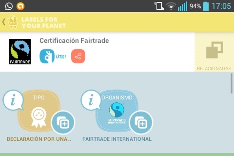 Labels For Your Planet está disponible gratuitamente en Android Market. Una vez instalada, el usuario puede elegir dos tipos de búsqueda: bien por el tipo de producto que va a adquirir (alimentación, energía, ropa, etc.), o bien por el nombre que aparece en el sello que ha encontrado en un producto concreto.