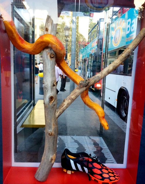 Apoyadas en el mensaje “Instinct takes over”, las paradas de autobuses se decoraron como si estuvieran en la jungla e incluían un terrario en los mupis de las mismas donde podía observarse el nuevo modelo de Adidas rodeado de réplicas de peligrosos depredadores.