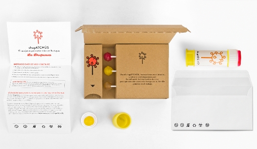 Una vez entran en contacto donantes y receptores gracias a la web, los desarrolladores del proyecto facilitan una vía de contagio original, que hará el trago de ponerse malo algo más dulce. Han creado un caramelo de palo, al que llaman ‘ChupATCHÚS’ que se lame e infecta con la saliva, a modo de frotis bucal, y se envía por correo a la persona con la que hayas entrado en contacto en Bajaciones.com.