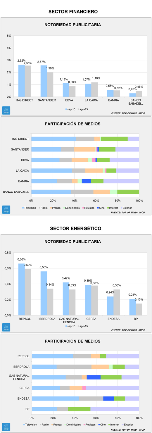 En cuanto al sector energético, todas las marcas experimentan incrementos en la notoriedad, seguramente. Repsol consolida su liderazgo, seguida de Iberdrola y Gas Natural Fenosa, estas últimas impulsadas por sus campañas de captación de clientes de cara al invierno y de imagen (como la de la Selección Española de Fútbol de Iberdrola, en la imagen).