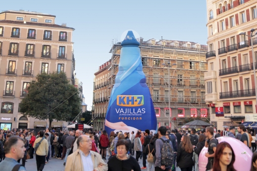 El jueves 22 de octubre se destapó el secreto por sorpresa. Un espectáculo de danza y poesía inspirado en el placer irrumpía en Callao y subía aún más las expectativas del público de la calle, que se agolpaba alrededor. Mientras ocho bailarines se movían alrededor del volumétrico gigante, caía la funda y quedaba al descubierto el envase gigante KH-7 Vajillas. También se llevó a cabo una entrega de ‘sampling’ durante dos días.