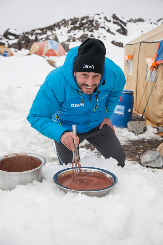 La Expedición BBVA al Annapurna, encabezada por el alpinista de 76 años, ha contado por primera vez con un 'chef' de fama mundial encargado de diseñar un menú de alta montaña para ser cocinado a más de 7.000 metros de altitud. Jordi Roca abandonó las cocinas de El Celler de Can Roca para elaborar un menú para unos comensales únicos en un escenario inigualable