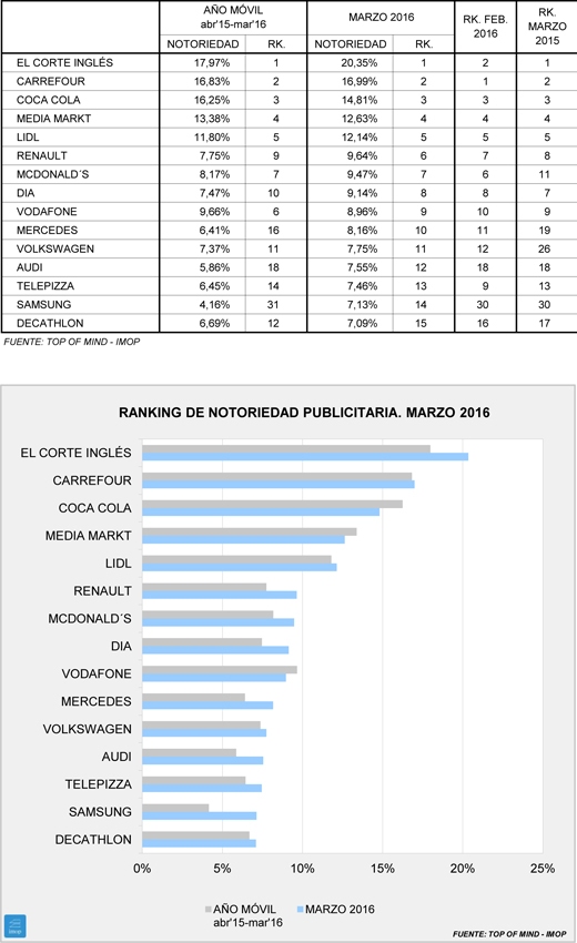 A continuación, le siguen Carrefour, Coca-Cola y Media Markt, habituales en lo más alto de la clasificación.