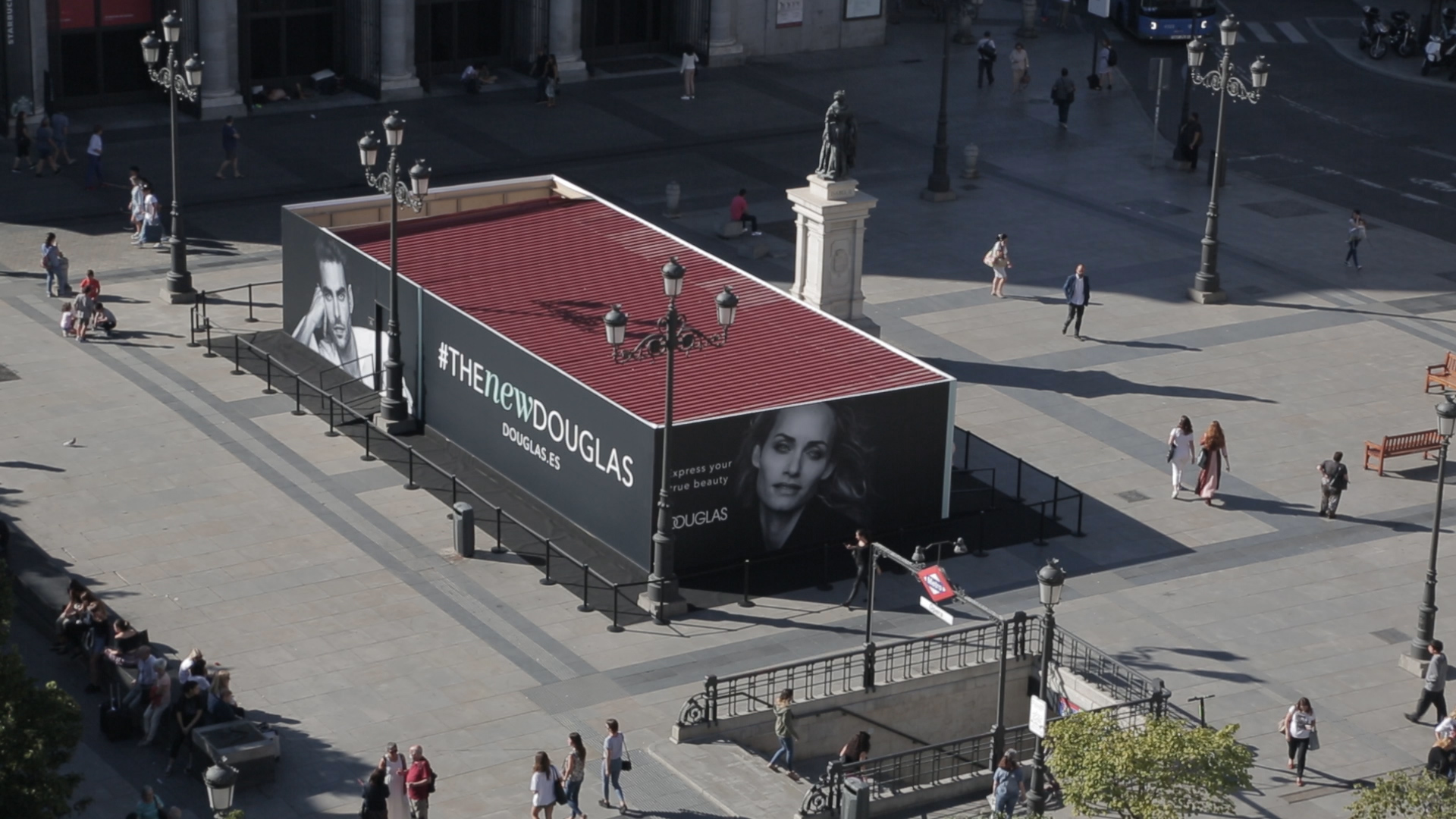 En medio de la plaza mencionada, se encontraba una gran caja con la nueva imagen de The New Douglas, un espacio donde profesionales y expertos ofrecieron a los visitantes sesiones de maquillaje y cuidado de la piel, gracias al porfolio de productos propios de la marca Douglas y otras firmas.