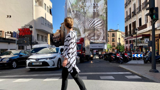 ¿Conoces a Paret? Esta es la pregunta que reza en la lona gigante de 185 m2 que decora la fachada del edificio número 4 de la plaza de Herradores (Madrid), junto al Mercado de San Miguel, y que reproduce 'Cebra', una de las obras más especiales de Luis Paret, realizada en 1774.