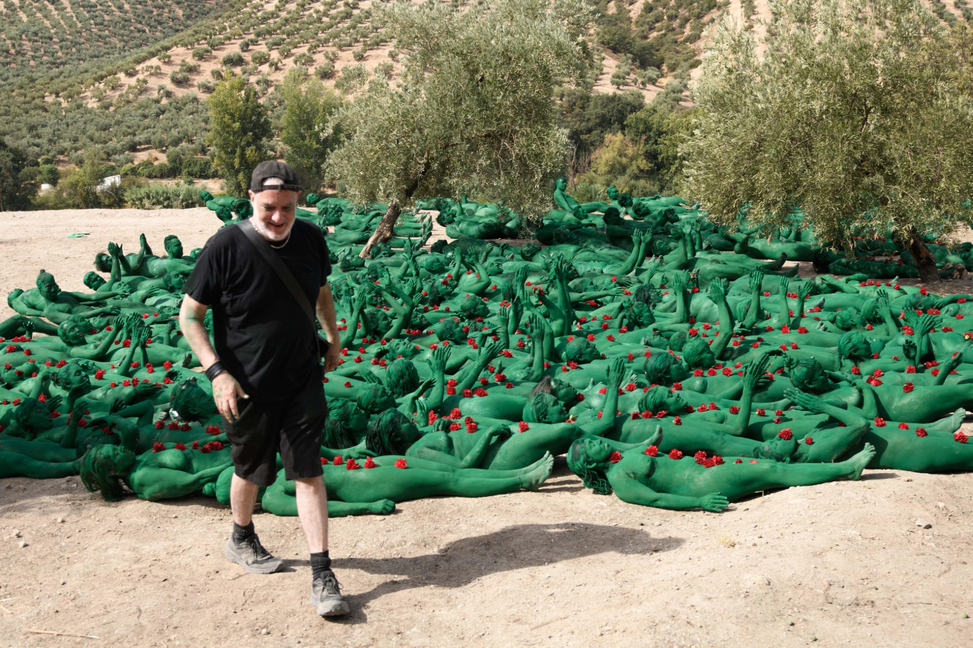 La instalación artística -la primera que Tunick ha realizado en Andalucía- ha tenido lugar en un olivar cercano a Granada. Los participantes, llegados de hasta 25 países diferentes, han vivido una experiencia única. Atentos a las instrucciones del artista, se han integrado en el entorno natural para crear una imagen de gran carga visual y simbólica.