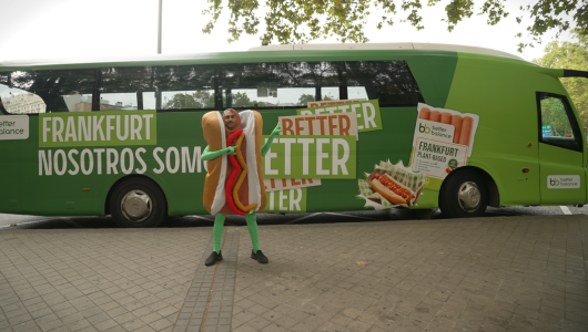 Con mensajes como “Frankfurt, nosotros somos Better” y “Colchoneros, esta noche cenamos Frankfurt”, la marca aprovechó la ciudad de origen el rival alemán para destacar los beneficios de sus productos 100% vegetales.