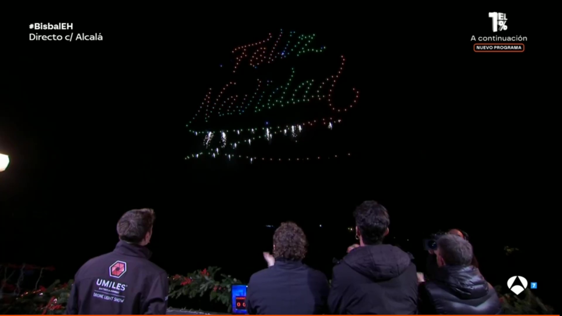 El programa de Antena 3 El Hormiguero estrenó la temporada navideña con un innovador espectáculo aéreo de drones, convirtiéndose en uno de los primeros programas de televisión en utilizar pirodrones como parte de su narrativa visual. La acción, diseñada por la empresa española Umiles, combinó 300 drones luminosos con 50 pirodrones de chispa fría para iluminar el cielo madrileño durante la emisión del programa que contó con la visita de David Bisbal.