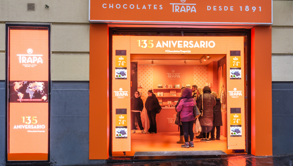 Con motivo de su 135 aniversario, Chocolates Trapa refuerza su estrategia de acercamiento al consumidor con la apertura de su primera pop up en Madrid. La firma chocolatera ha elegido la Gran Vía como escenario para este espacio efímero, ubicado en el número 46, que permanecerá abierto del 26 de enero al 1 de febrero, en horario de 10:30 a 21:30 horas.