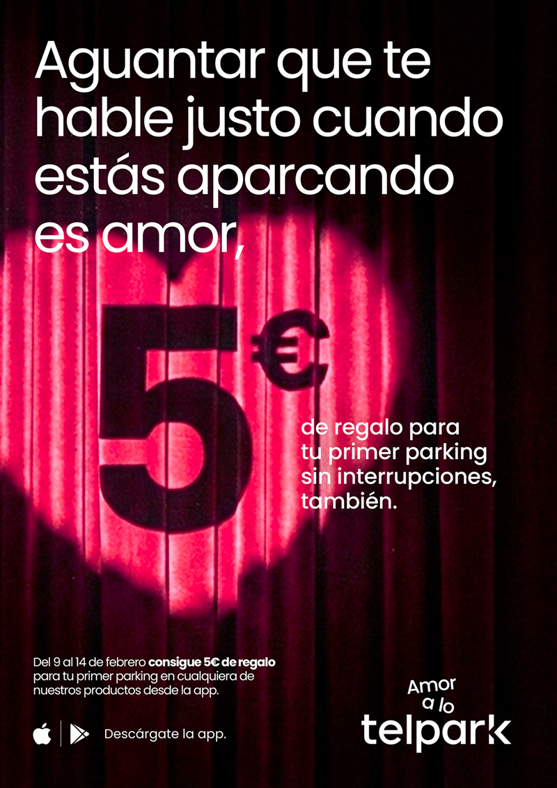 La compañía parte de una comparación tan real como divertida: encontrar aparcamiento en la ciudad puede ser tan complicado —o más— que las relaciones de pareja. A partir de esa idea, Telpark se suma a la conversación del 14 de febrero con una promoción especial: 5 euros de regalo para nuevos usuarios que utilicen la aplicación por primera vez entre el 9 y el 15 de febrero.