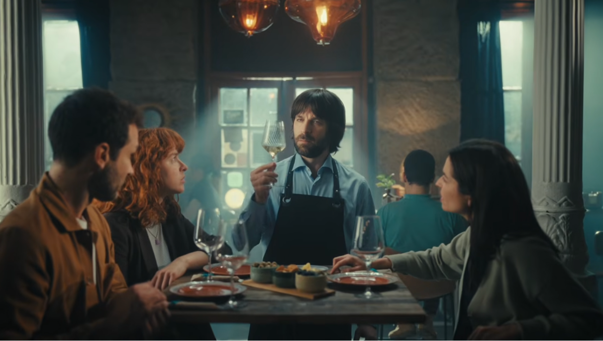 La pieza creativa, producida por Lee Films bajo la dirección de Agus Berruezo y protagonizada por Miguel Bernardeau, arranca con una escena familiar: tres amigos en un bar y un camarero que empieza a describir el vino recurriendo a explicaciones cada vez más abstractas y desconcertantes, hasta que Bernardeau irrumpe en escena tomando una botella de Rueda y simplemente, pregunta: ¿un Rueda?
