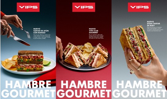 “Seguimos construyendo el posicionamiento y territorio de marca de Vips de forma consistente, pero esta vez hemos querido dar un paso más en ese rol observador de la sociedad que tiene la marca, para personificarla en un nuevo personaje, el cocinero. Una forma diferente de presentar los nuevos platos (unos sándwiches gourmet) y poner en valor la calidad de sus cocinas en las que se preparan los platos en el momento”, señalan desde Mono Madrid.